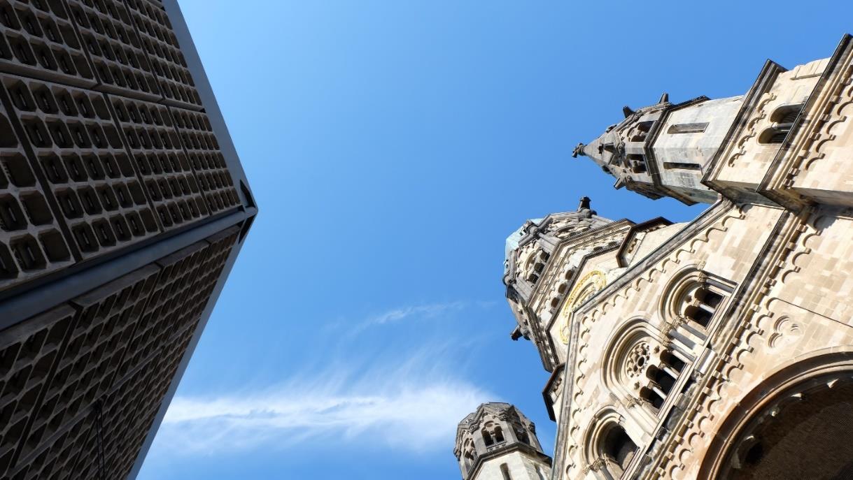 Egon Eiermann, old and new church, Kaiser Wilhelm Memorial Church, Berlin, 1959-63