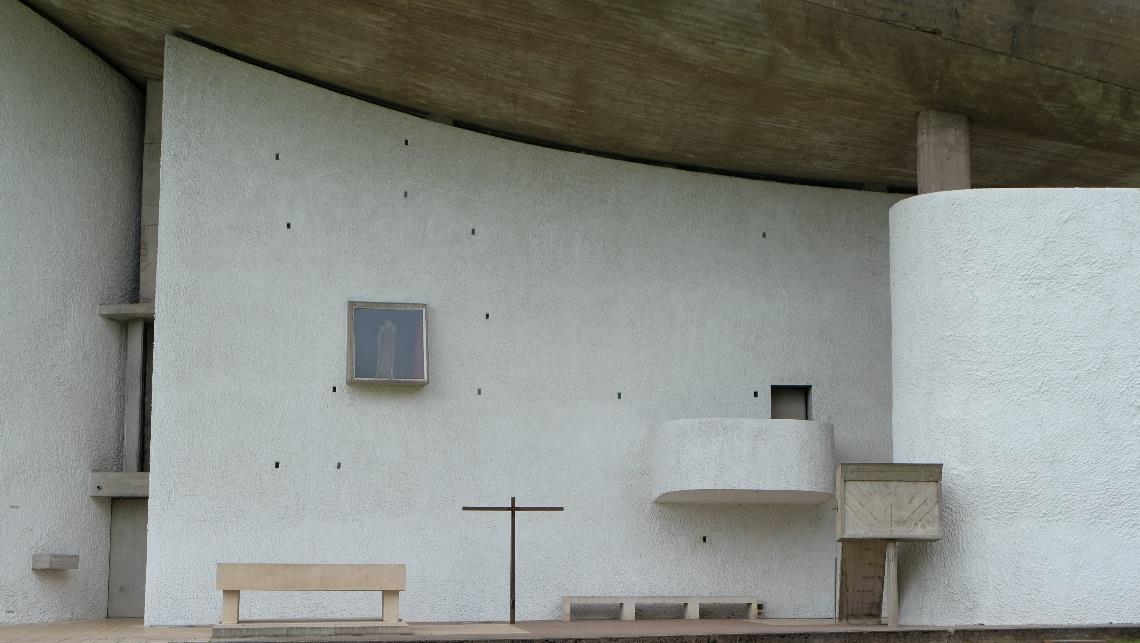 Le Corbusier, exterior chapel, Notre Dame du Haut, France 1954